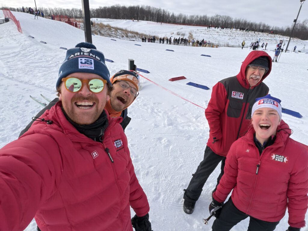 Austin Burley (holding the camera) coached for his second year with Madnorski and this year applied and was accepted to be one of the Great Lakes volunteer coaches for the Central Cross Country Skiing NENSA Championship trip. Austin will be supporting the Great Lake and Midwest athletes — thank you for your service to our top regional athletes!! It is so great that he will be there with our three athletes ๐